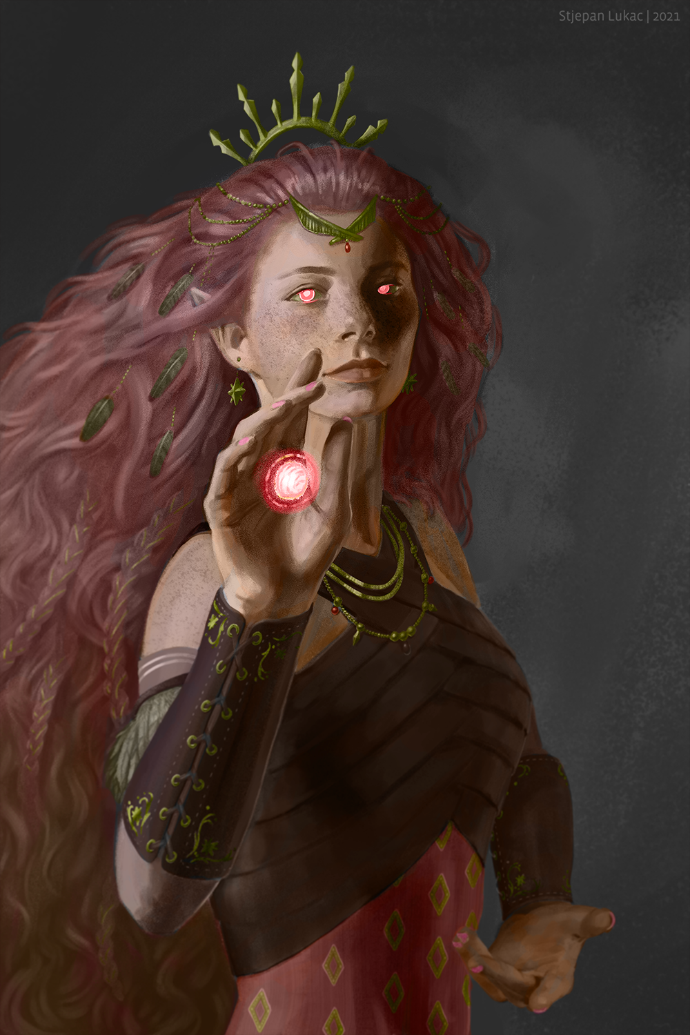 , an Elven Wildfire Druid (as portrayed by Anna Prosser in "Nights of Eveningstar")